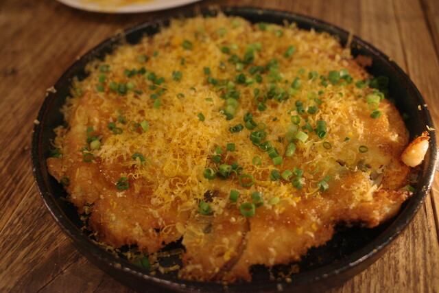 黄金のチヂミは、たっぷりのカラスミがかかっています!
