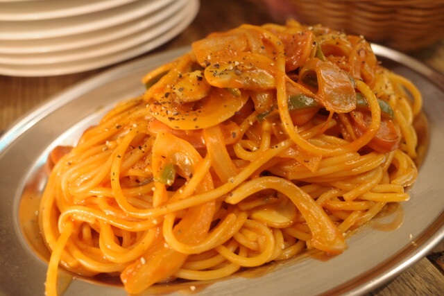 昔ながらのナポリタン、お皿もかわいい。