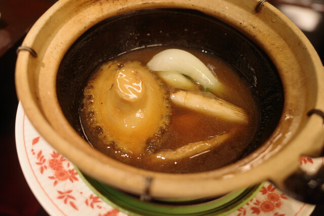 旨みたっぷりの鮑は弾力ある食感も楽しい。