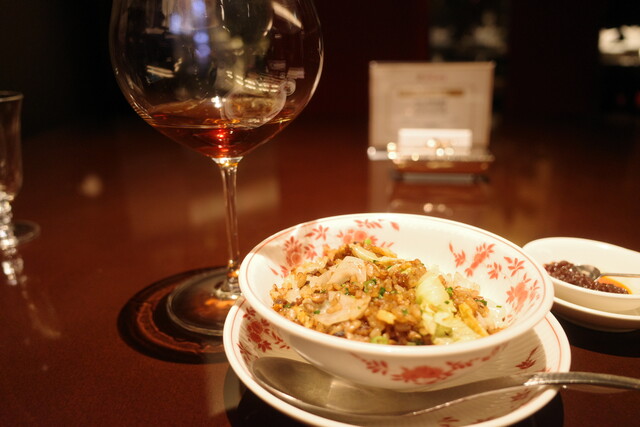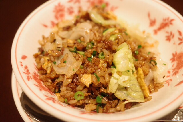パラパラっと軽やかに炒められた炒飯に、たっぷりの挽肉を合わせて。