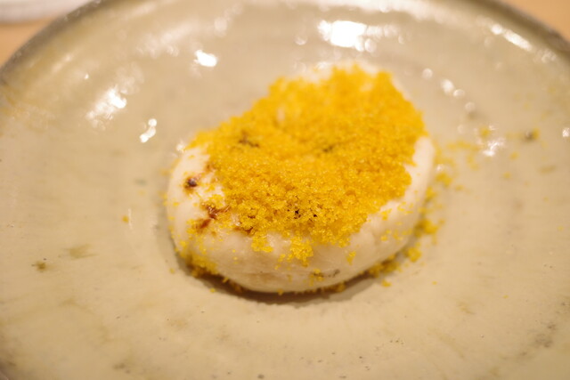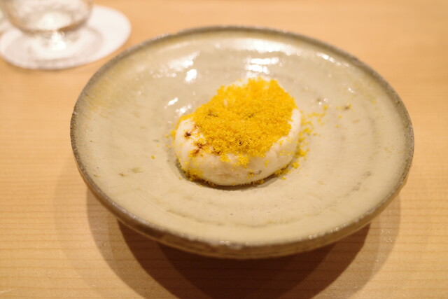 とらふぐの白子にカラスミをかけた、日本酒泥棒な一皿。