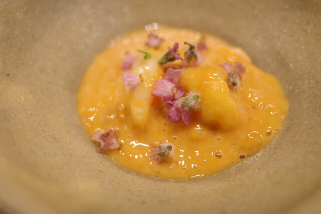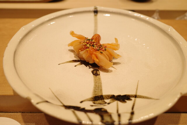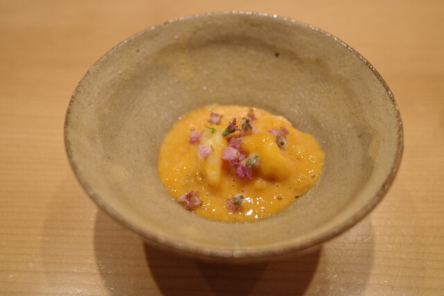ボタン海老は雲丹のソースをたっぷりとかけて、贅沢に。