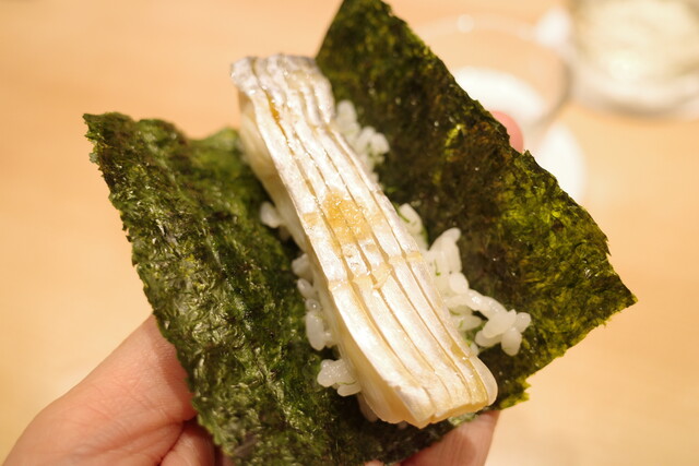 佐賀県産の小肌は、お腹の部分だけを使ったなんとも贅沢な握り。