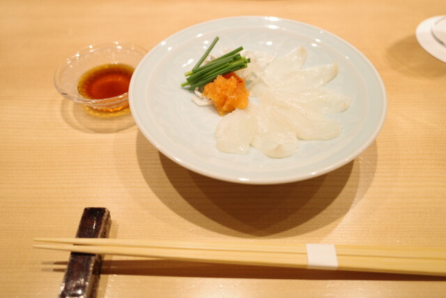 まず最初に登場したのは、とらふぐのお刺身。