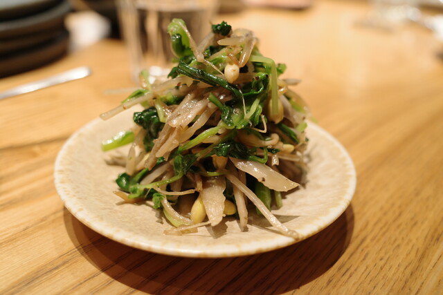 シャキシャキ食感が楽しい、豆苗、新ゴボウ、春菊のナムル。