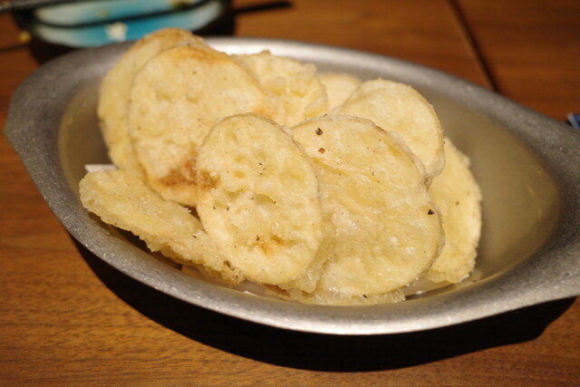 辛子れんこん、何気に食べたの初めてかも…!揚げたてでサックサクで美味しい。