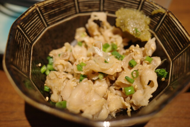ぷりっとした食感のもつ、お好みで柚子胡椒をつけて。