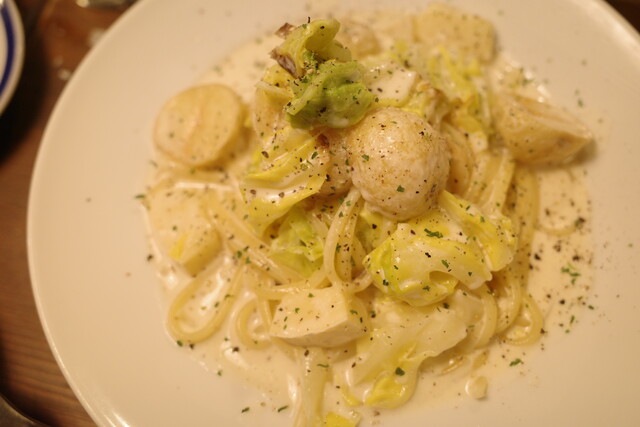 〆にいただいたのは、春キャベツと新じゃがのクリームパスタ。