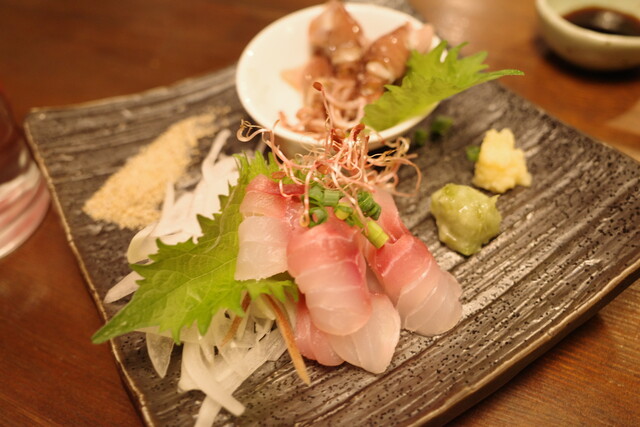 ワインに合う前菜をつまんでいたと思いきや、お刺身も食べられちゃう。