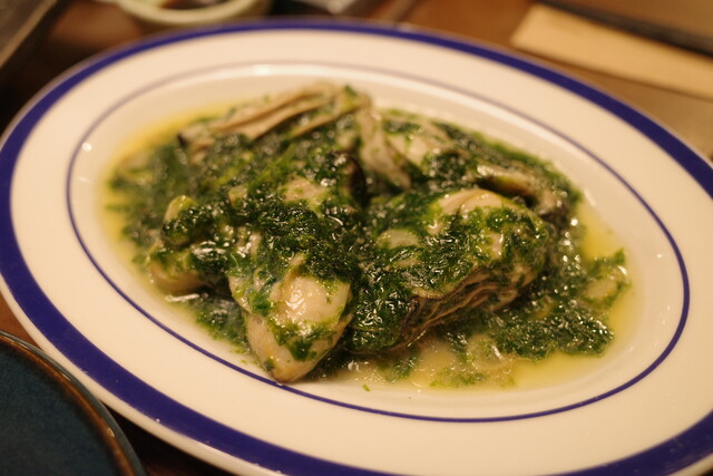 こちらは、大粒の牡蠣と生海苔のソテー。