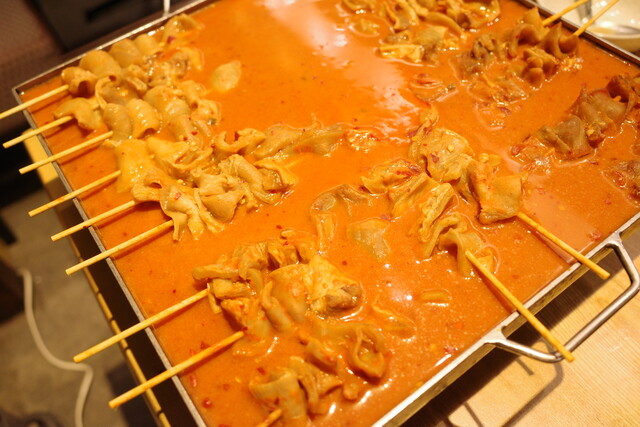 入口には牛すじ串煮込みや手羽先が置いてあり、もう見るだけでこれは注文決定!
