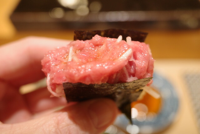 まずは、ネギトロからスタートです。ふわっととろけるネギトロ、鮪の旨みも最高です。