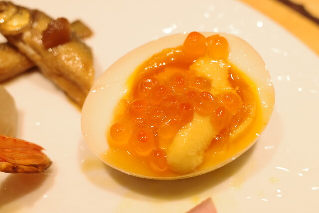 煮卵にイクラ乗せはもう日本酒が止まらなくなっちゃう組み合わせ。