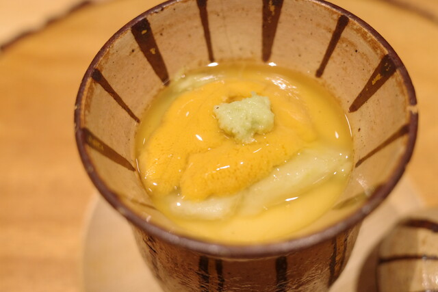 優しい餡掛けに、雲丹が添えてあるというサプライズ。