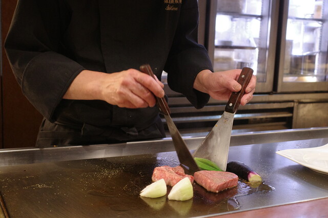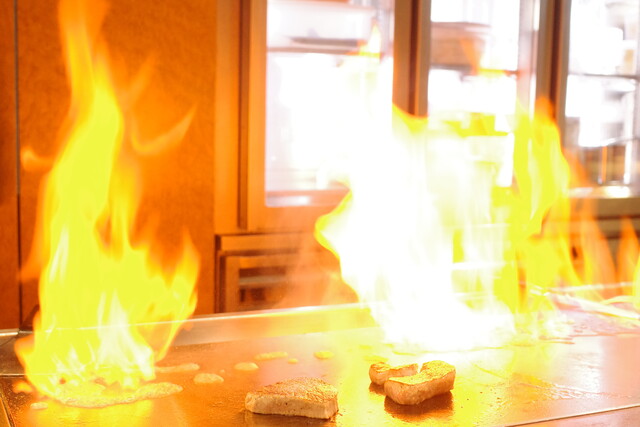 鉄板焼きは目の前のパフォーマンスを楽しめるので、会話も弾んでいいですね。