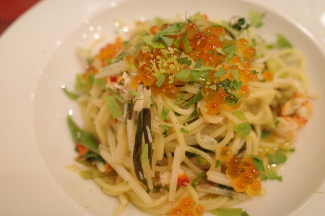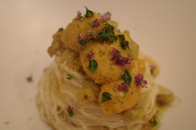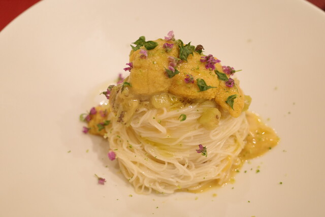 雲丹とビーナスの冷製パスタそうめん。