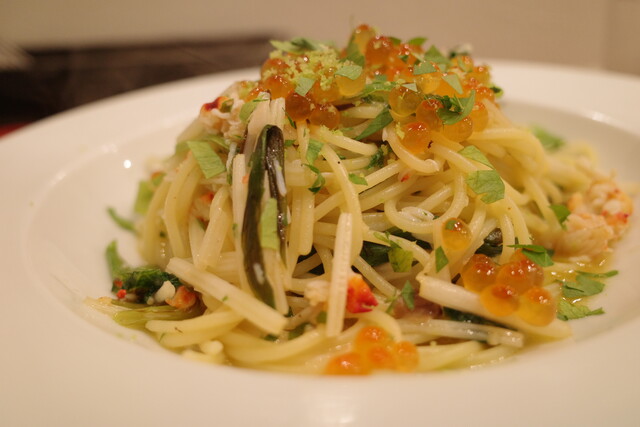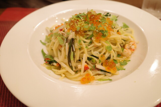 ハツの好みの乾麺に、蟹やイクラがたっぷり!