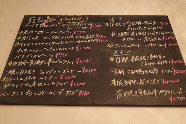 飲みながら黒板に書かれているメニューを見て、じっくり検討。