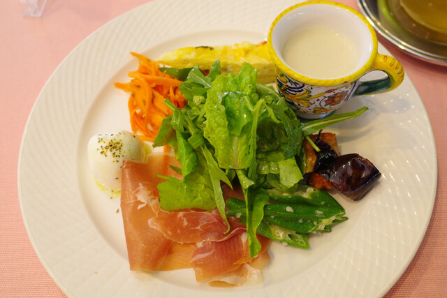 この日は前菜盛り合わせにパスタ、メイン料理を楽しめるコースをチョイス。