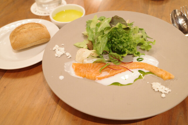 しっとりなめらかなサーモンは濃厚な味わいで爽やかなソースとの相性もばっちり。