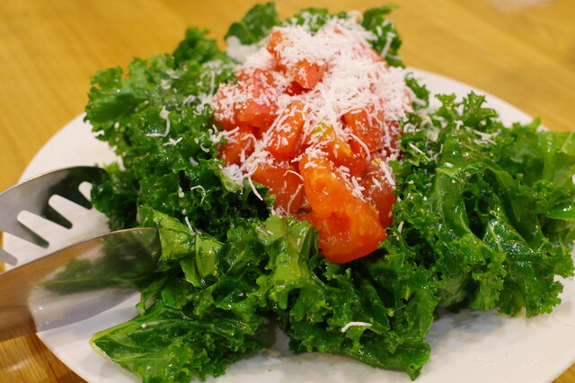 色鮮やかな国産ケールのサラダ。チーズがアクセントになっています。