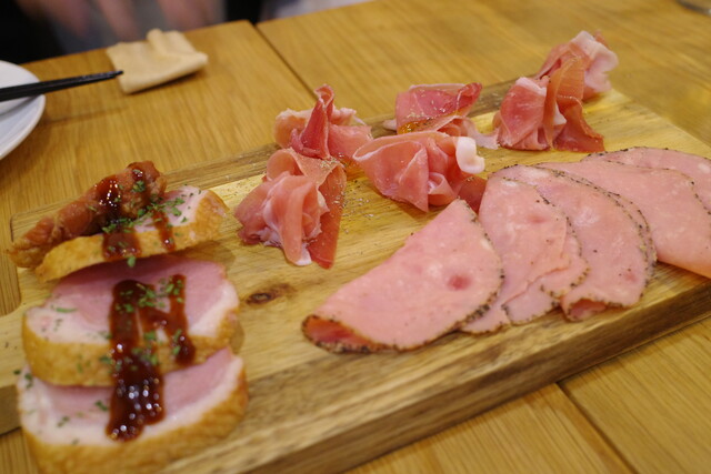 生ハムや厚切りの鴨には甘めのソースがかかっています。