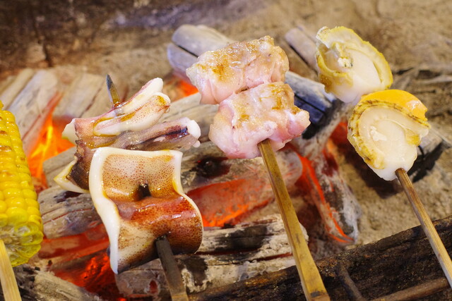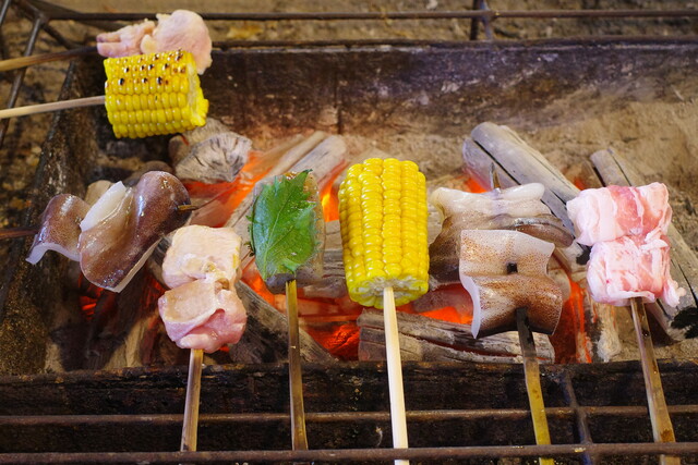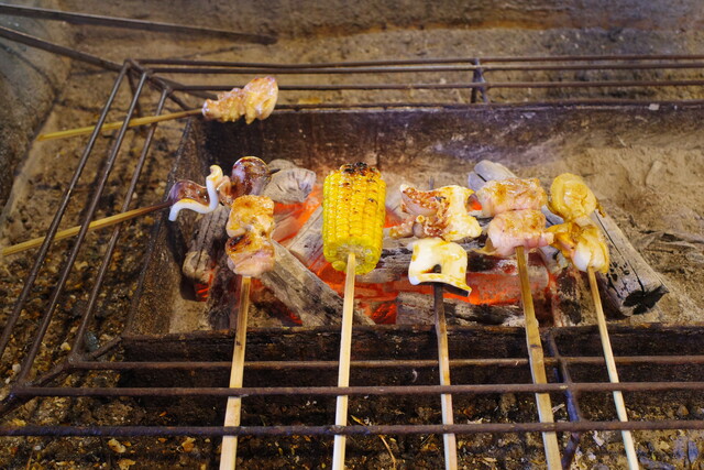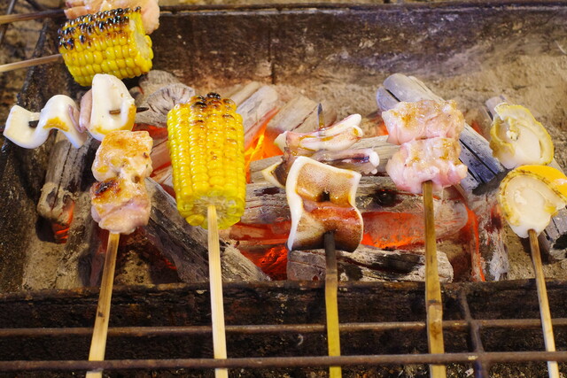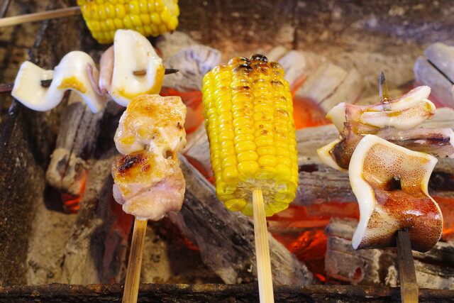 とうもろこしや烏賊、鶏肉も香ばしく仕上がってまいりました。