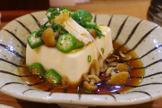 なめらかな絹豆腐になめこやオクラをたっぷり乗せて、