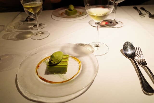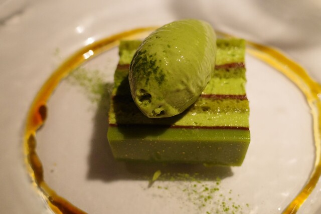 スイーツは、「抹茶とヴァローナチョコレートのオペラ」。