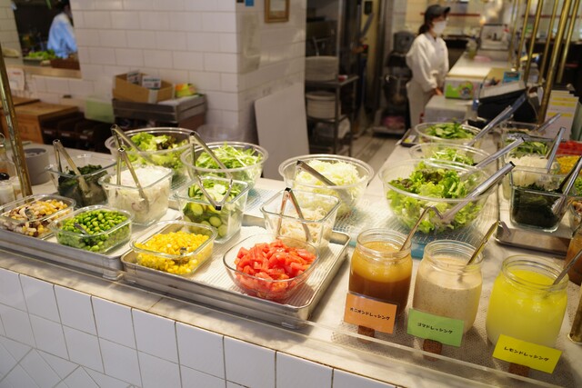 ランチタイムはサラダビュッフェが付いてきます。野菜たっぷり食べられるところも嬉しいですね。
