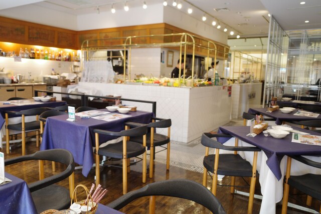 店内は広々としていて、鮮やかなブルーのテーブル席が60ほど。