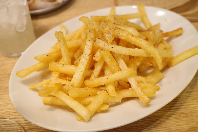 シンプルながら手が止まらない「フレンチフライ」も健在。塩加減、揚げ具合、すべてが絶妙で、おしゃべりの合間に気づけばなくなってしまう危険なおつまみです。