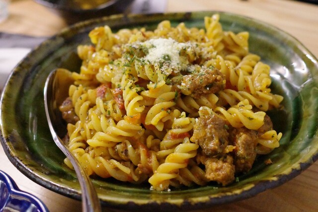 〆にはなんとパスタ。日本酒と一緒に味わいましたよ。