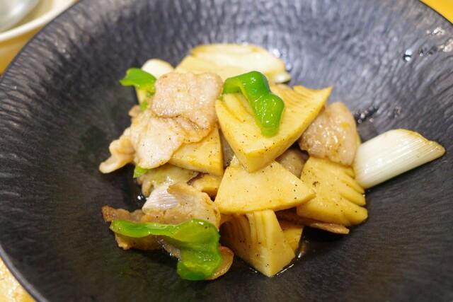 豚バラと筍を豪快に炒めた一品。