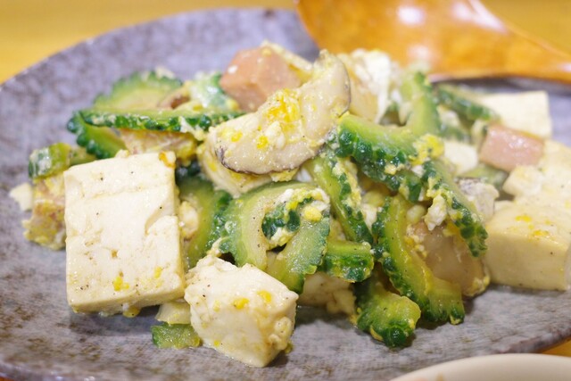 大好物のゴーヤチャンプルー。お豆腐もごろっと大きくて最高!