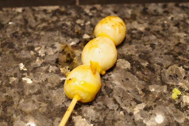 うずらの卵は程よい半熟加減、さすがの職人技です。