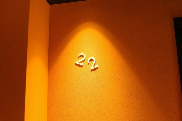 真っ黒な扉から中へ入ると、店内はうってかわって、鮮やかなオレンジ色の壁。