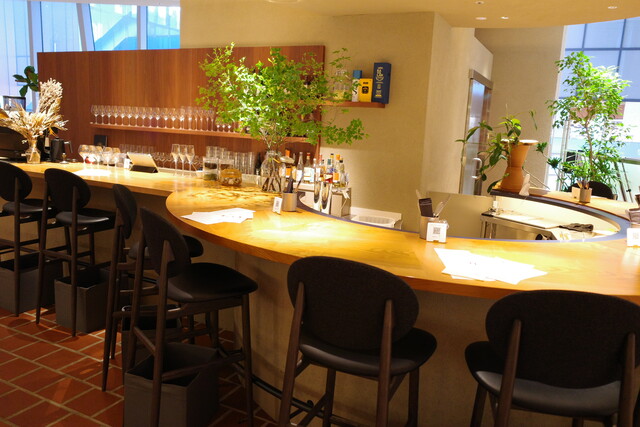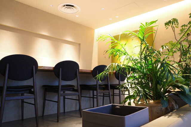 グリーンと木の雰囲気がゆったり落ち着きます。スタイリッシュなカウンターに、