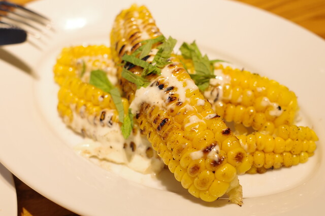 焼きトウモロコシ。香ばしく焼き上げられて、ほっくほくの食感が楽しいです。