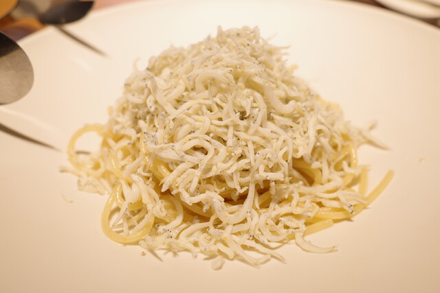 最初にいただいたのは、大根のフリット。カラスミをたっぷりかけて楽しみます。