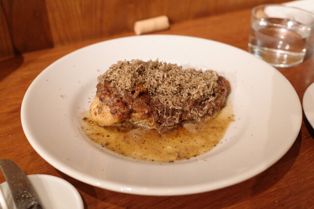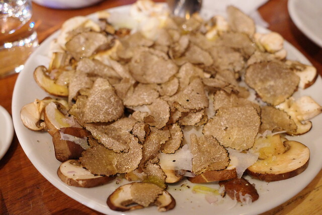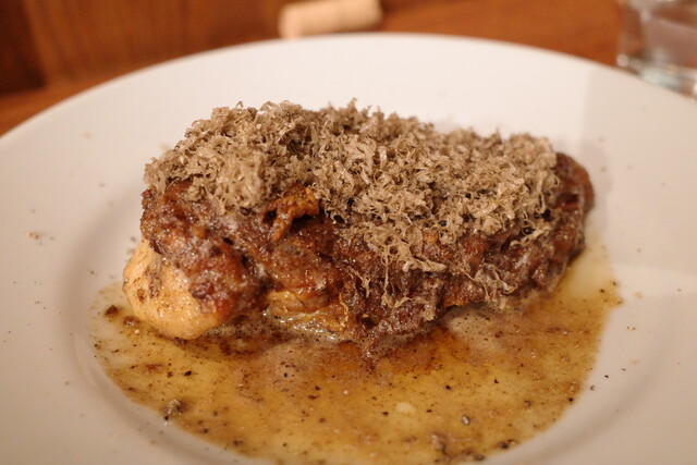 そこにトリュフもこれでもかというほどかけていただいて、ワインと一緒に楽しみます。