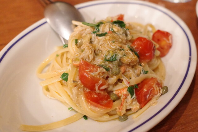 最後にいただいたのは、蟹のパスタです。