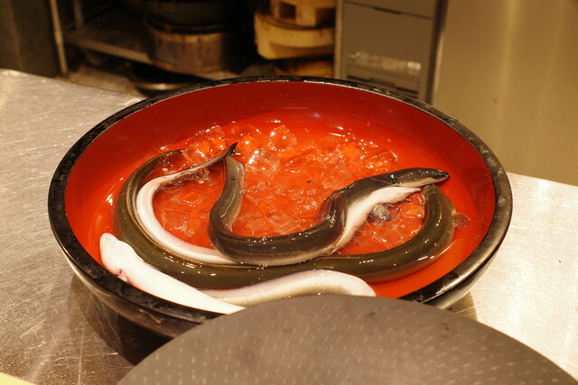 水族館のイルカショー並みに、鰻が跳ねるので目の前のカウンター席は水に注意です。