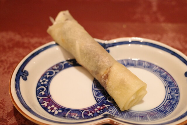 ほぐした毛蟹の旨みを、カラスミの塩気と春雨の食感で包み込む。