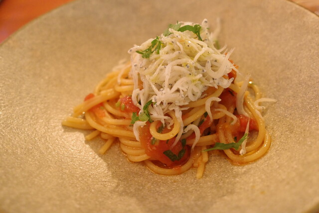 選べるパスタはシラスとトマトのスパゲッティをチョイス。