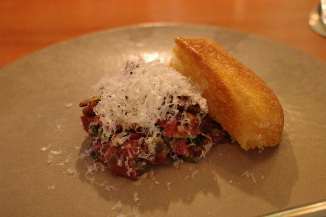 馬肉のタルタルは、フォカッチャにのせてブルスケッタ風に。