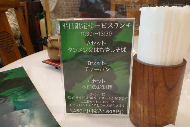 どのセットにも、餃子3個・サラダ・香の物・デザートが付いてきます。さらにBセットにはスープ、Cセットにはライスとスープがセットになり、ボリューム満点。それでいて価格は Cセットが1,595円と、観光地・熱海で考えると驚きのコスパです。