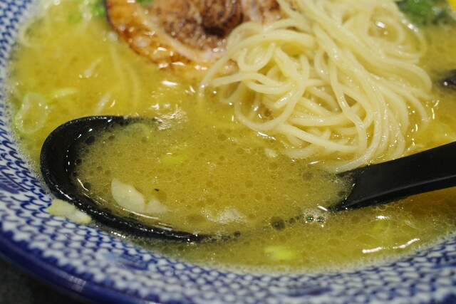 麺はチョイスした細麺が大正解でした! もちもちとした食感で、この力強いスープをしっかりと持ち上げてくれます。スルスルと入っていく心地よい喉越しもたまりません。