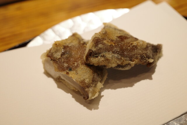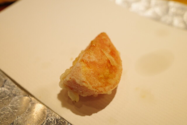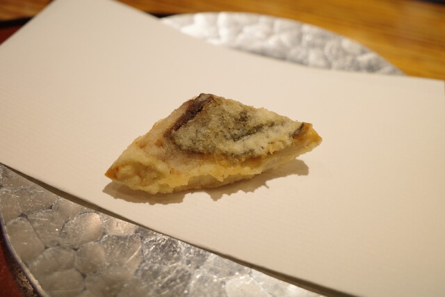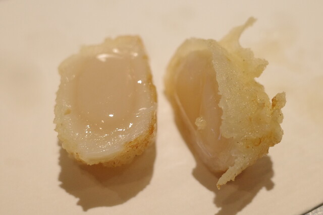 繊細な衣の中で火が入った身は、香り高く、ねっとりとした甘さがじわじわと押し寄せる。