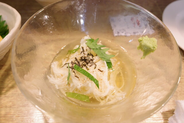 つるりとした喉越しで、お酒の合間のリフレッシュにぴったり。〆みたいに食べられる一品です。